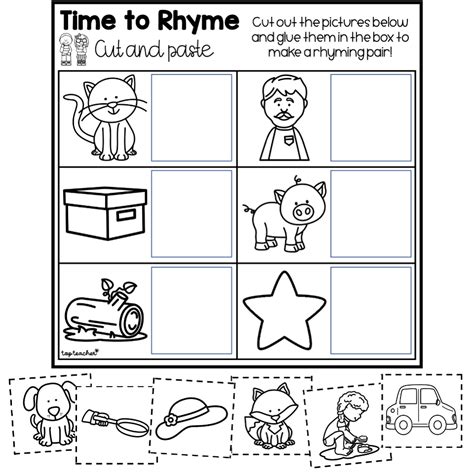 Rhyming words cut and stick worksheet cvc words Reception/Year 1