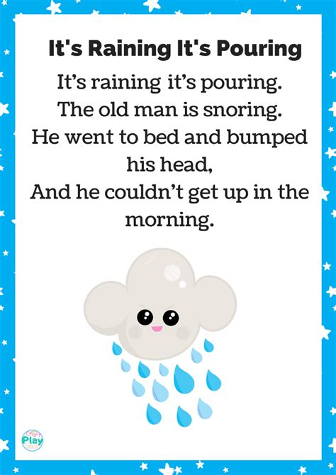 It's Raining It's Pouring nursery rhyme with lyrics Its raining its