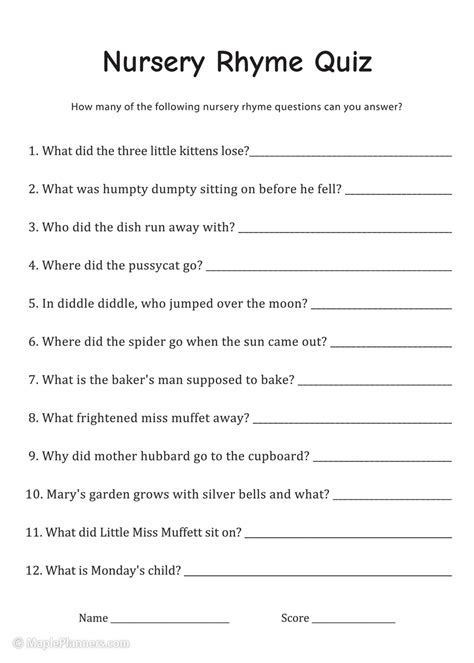 Nursery Rhyme Trivia Questions And Answers Quiz