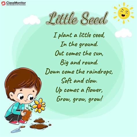 Planting a seed song/poem Preschool songs, Classroom songs, Spring