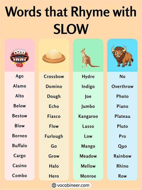 Rhymes With Slow. All | 1 | 2 | 3. From the best rhyming dictionary made for.