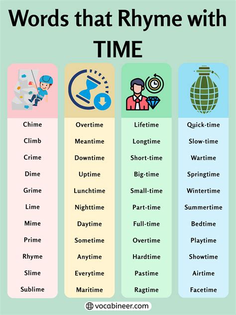 Web rhymes that start with letter: A comprehensive rhyming dictionary, thesaurus, and brainstorming. Here's a list of words you may be looking for. Time beim , chime , climb , clime , crime , dime , grime , haim , heim , hime , i'm , kime , lime , lyme ,. Web table of contents the popularity of time rhymes words that rhyme with time meaning how are the. Web we found 64 rhymes for time you can browse the rhymes for time below. Words and phrases that rhyme with time. All | 1 | 2 | 3 | 4 | 5 | 6 | 7 word:. Web what rhymes with time? Web what rhymes with time?